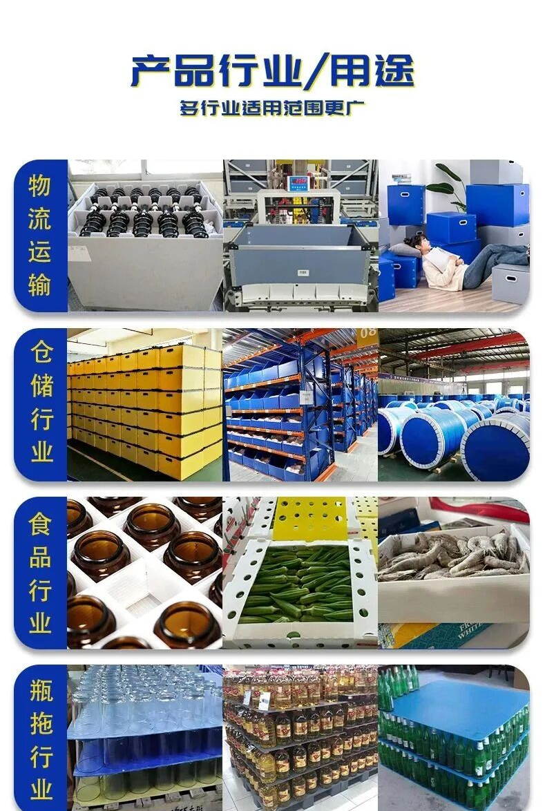 物流仓储:可定制中空板周转箱尺寸、规格、颜色、印刷,可有效区分产品仓储,提升周转效率
